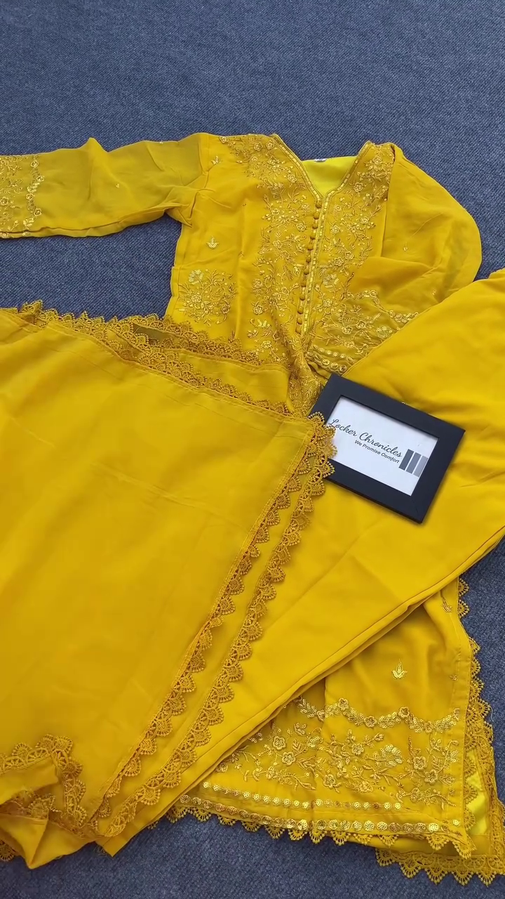 The bold yellow shade symbolizes positivity and joy, making it ideal for daytime festivities. The embroidery enhances its elegance, giving it a refined finish without excessive embellishment.