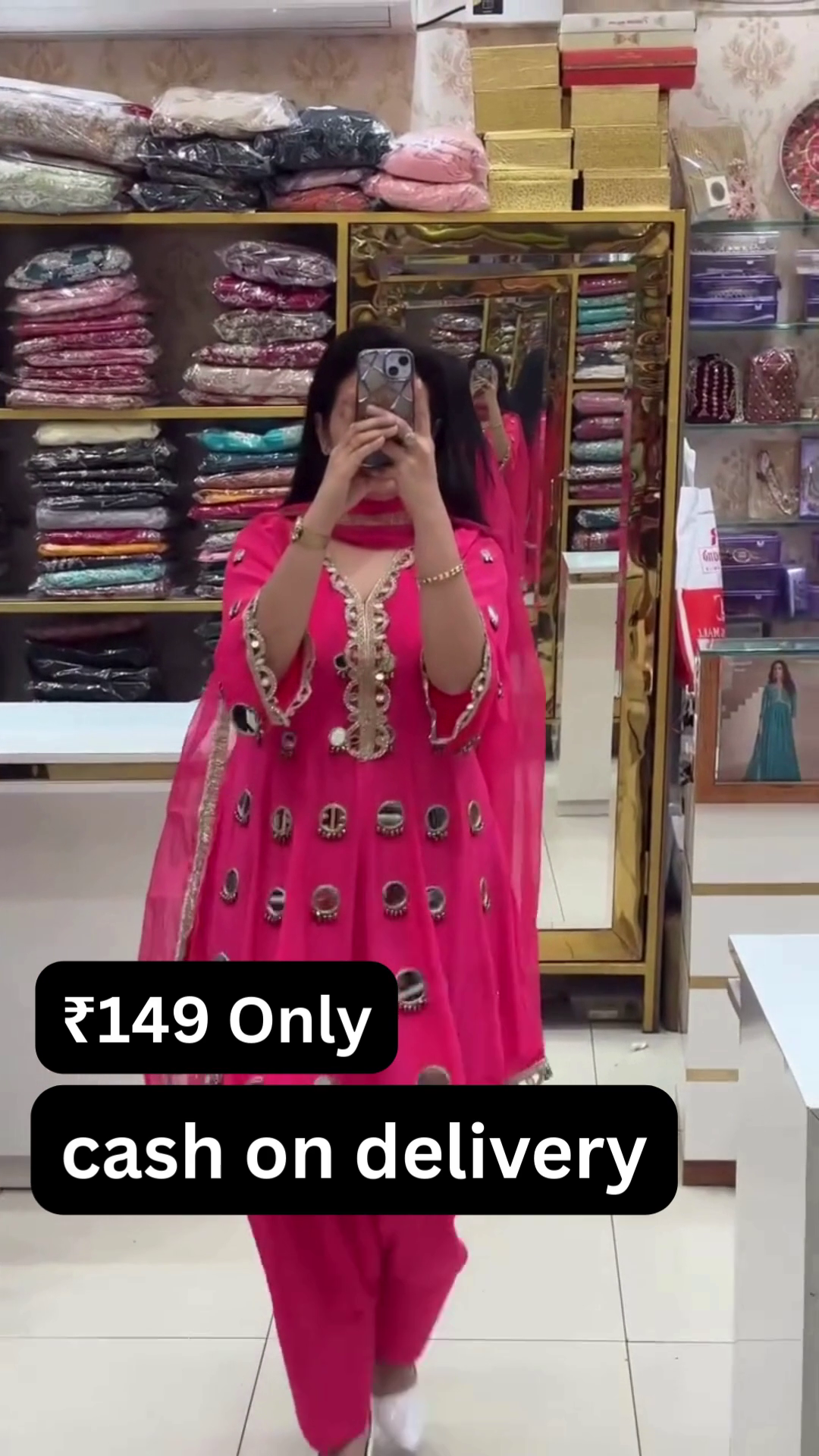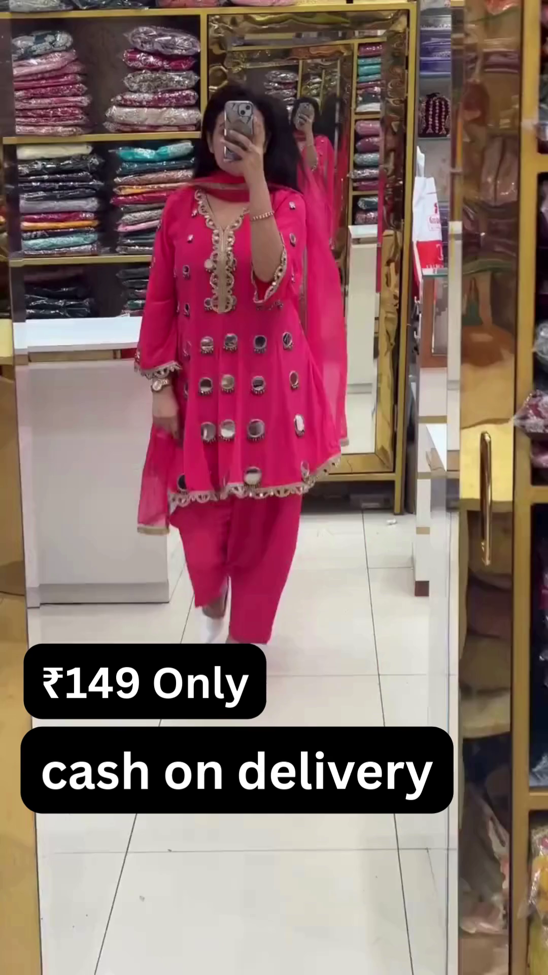 At just ₹149 with cash on delivery available, this suit offers exceptional value. It allows you to enjoy premium-looking ethnic wear without spending a fortune. Style it with statement earrings and traditional footwear to complete the look. This rani pink mirror work suit is a must-have for anyone who loves vibrant ethnic fashion with a touch of sparkle.