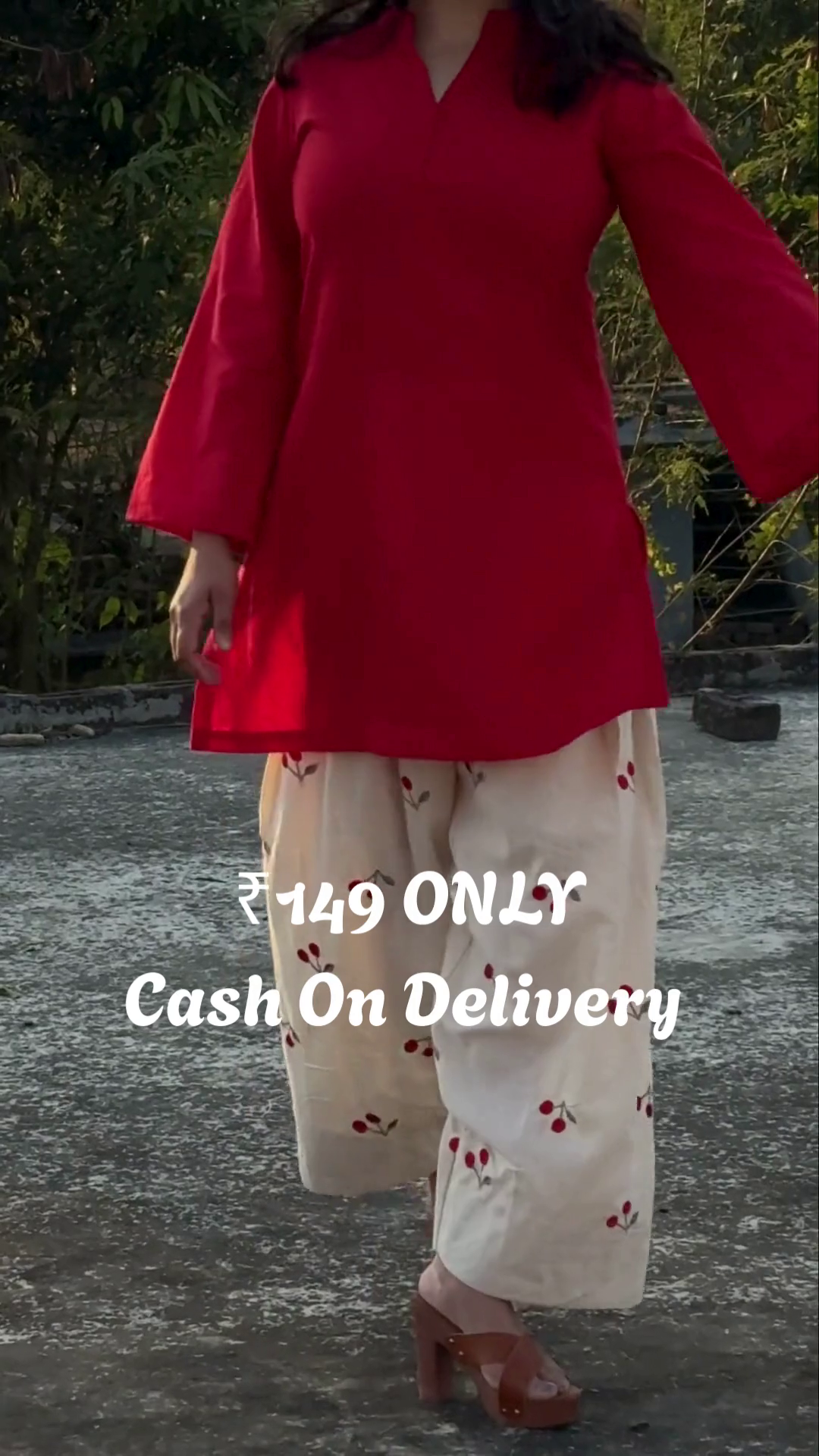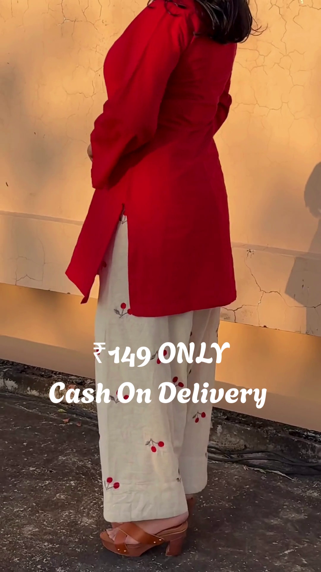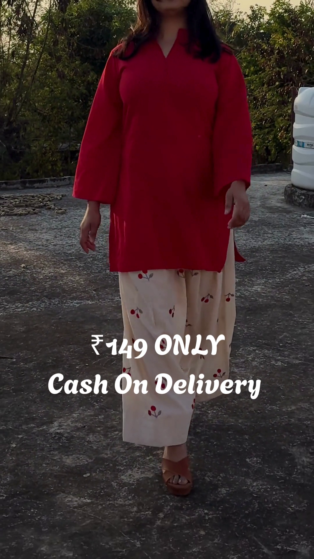 Add a pop of color to your daily wardrobe with this vibrant red kurti paired beautifully with cream printed palazzos. The rich red top creates a bold and confident look, while the soft cream bottoms featuring delicate cherry-style prints bring balance and charm to the overall outfit. This combination offers the perfect blend of simplicity and subtle detailing, making it ideal for casual outings, day events, or relaxed festive gatherings.